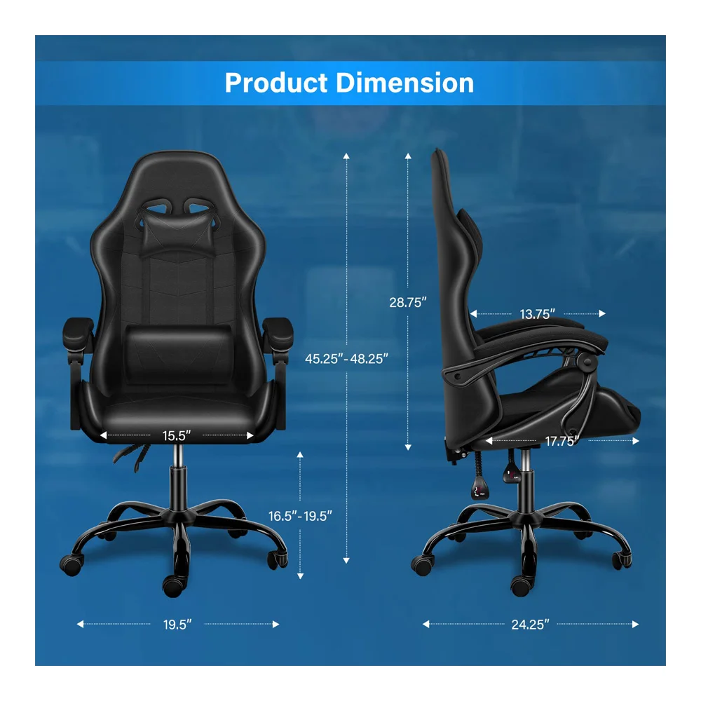 • High Quality The video game chair use high quality materials – durable metal frame, supportive molded foam, soft PU leather and smooth rolling casters.